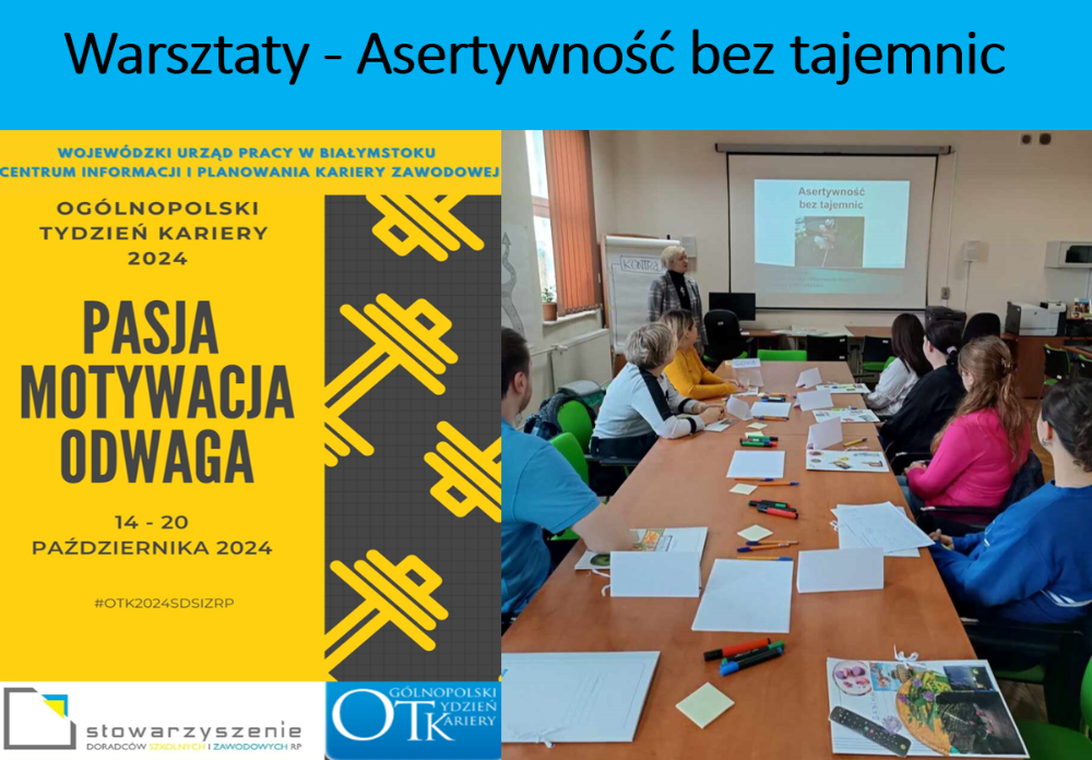 Od 14 do 20 października 2024 r. obchodzony był Ogólnopolski Tydzień Kariery (OTK). Tegoroczna edycja odbyła się pod hasłem: „Pasja – Motywacja - Odwaga" Wojewódzki Urząd Pracy w Białymstoku wraz z Powiatowymi Urzędami Pracy województwa podlaskiego przyłączył się do tej inicjatywy, celem promowania działań doradców zawodowych na rzecz planowania i budowania ścieżek karier oraz wzmacniania motywacji i odkrywania talentów, tak bardzo potrzebnych na rynku pracy.